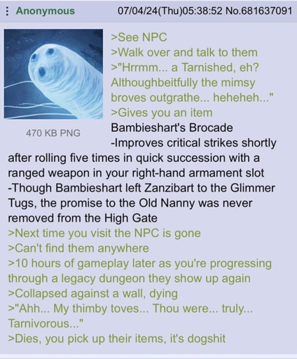 What nobody really talks about is that if you use the dogshit during the jabberwock fight exactly when it is bryllyg, it will apply the slithy status effect, which causes it to fail to gyre and gimble (you know the one), it rewards you with two lines of secret dialogue that completely recontextualizes the entire borogove arc.