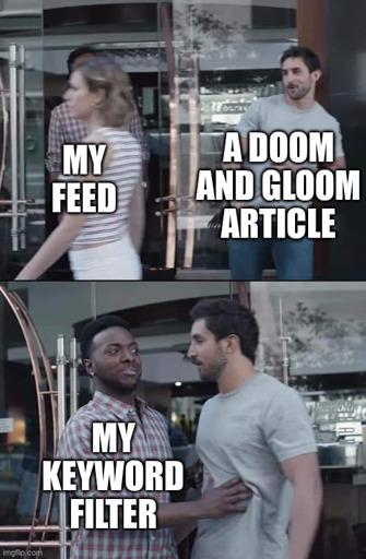 I have a few accounts, one of them is filtered AF for when I dont want any more doom for today. No matter how unrelated to end stage capitalism or American politics or Gaza a post is someone in the comments finds a way to bring it up.