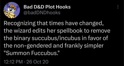 arrow-up1306arrow-down1imageNot to be confused with "Summon Funkubus"media.piefed.socialPugJesus@piefed.social to RPGMemes @ttrpg.networkEnglish · 16 hours agomessage-square12linkfedilink