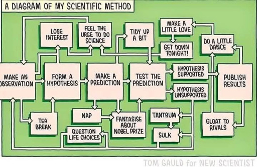 Hypothesis seems supported -> Write a draft -> Get your hopes high -> Get fucked by reviewers discrediting your entire field -> Feel down after getting the paper out in 10th round of reviews in the the 5th journal you submitted to