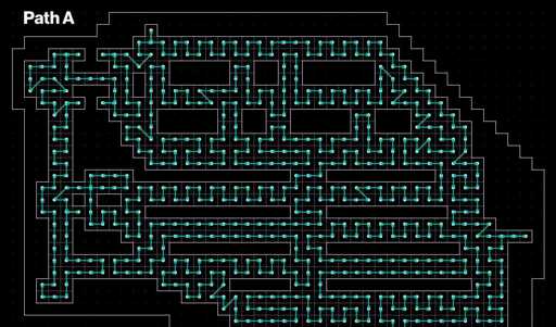 In retrospect it’s pretty obvious that the most efficient way to traverse a grid would include no diagonals. Every time you move on an axis you move to a cell in 1 unit distance of travel. Why would you ever choose to move to a cell in √2 unit distances when you could move 1 unit distance to achieve the same result of covering one more cell?